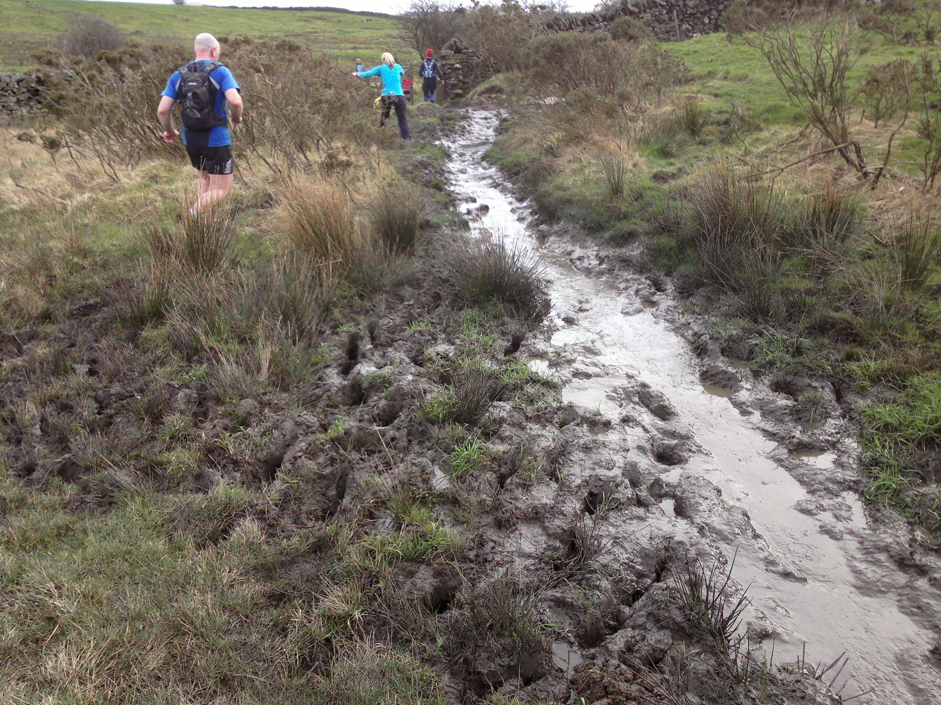 The muddy sections follow but they’re not as bad as previous years; a camera-man tried to get us to run through the centre of particularly juicy stretch but I spotted some dry footprints and used them instead.