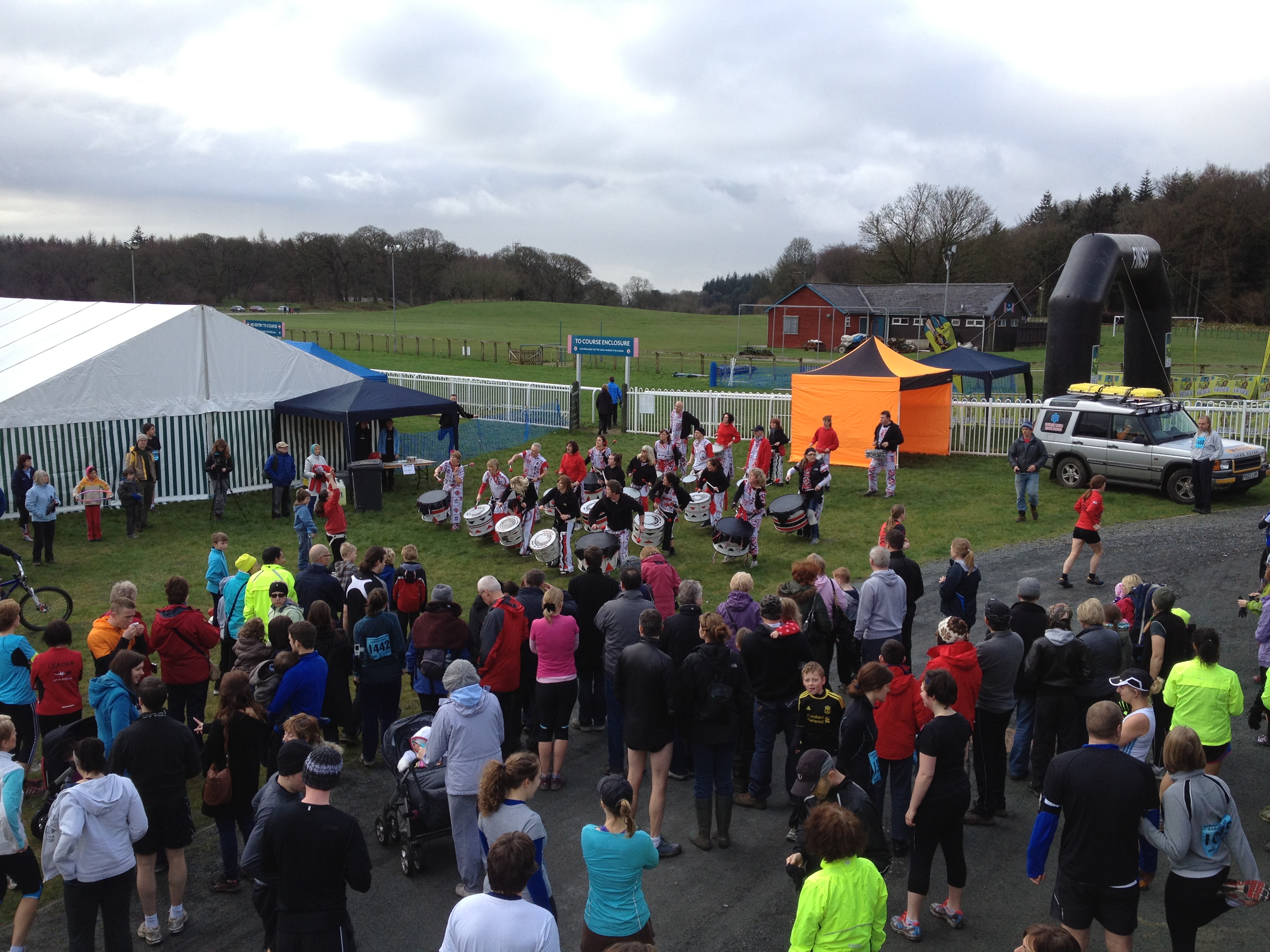 Some lovely farms, with flowers and lambs in abundance, mark the start of the end and the route soon enters the woods with a short steep climb. Then I heard them … the drums. Echoing through the hills, almost drowning the hysterical voices of the announcers as they called out the names of each finisher. Down through a small gate and onto the racetrack we ran – the drummers line the track as you finish and it makes for a thrilling finale. Kate had been hoping to pip 2hrs but frustratingly came in at 2:00:11 – just 11 seconds out! I was two minutes slower than last year, but I’m happy with that.
