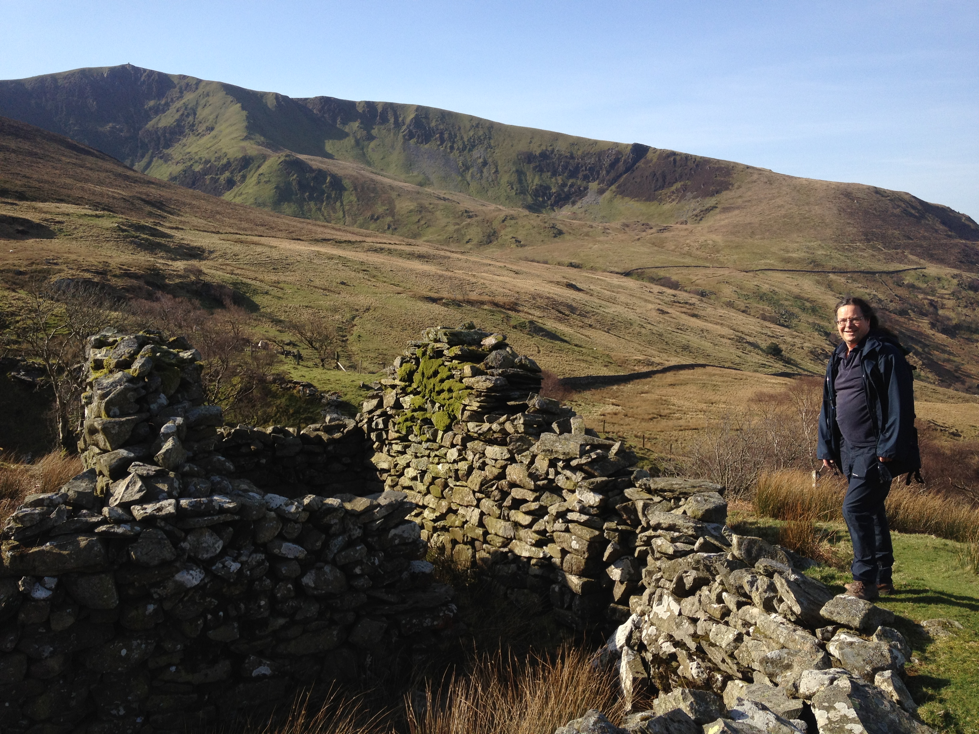 From Queen Victoria’s Jubilee commemorative tower we descended NW back to the valley, picking up a track at 525533 and then through Tal-y-mignedd-isaf farm back to the B4418.