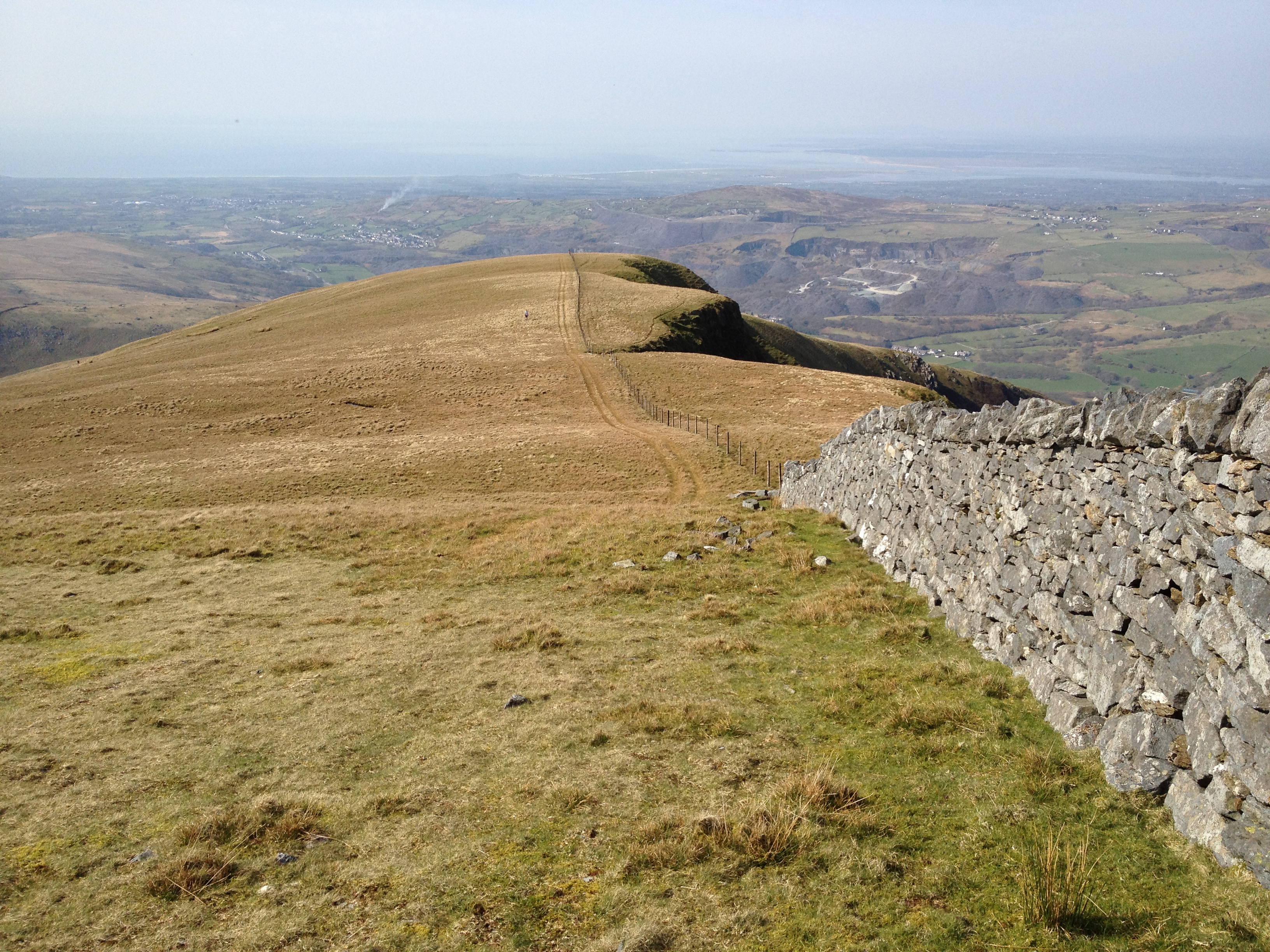 The weather was fabulously warm and sunny – a real surprise for March. Everyone was in t-shirts and light tops, and there were plenty of folk on the main Nantlle Ridge promenade soaking up the sun and looking at the extensive, if slightly hazy, views.