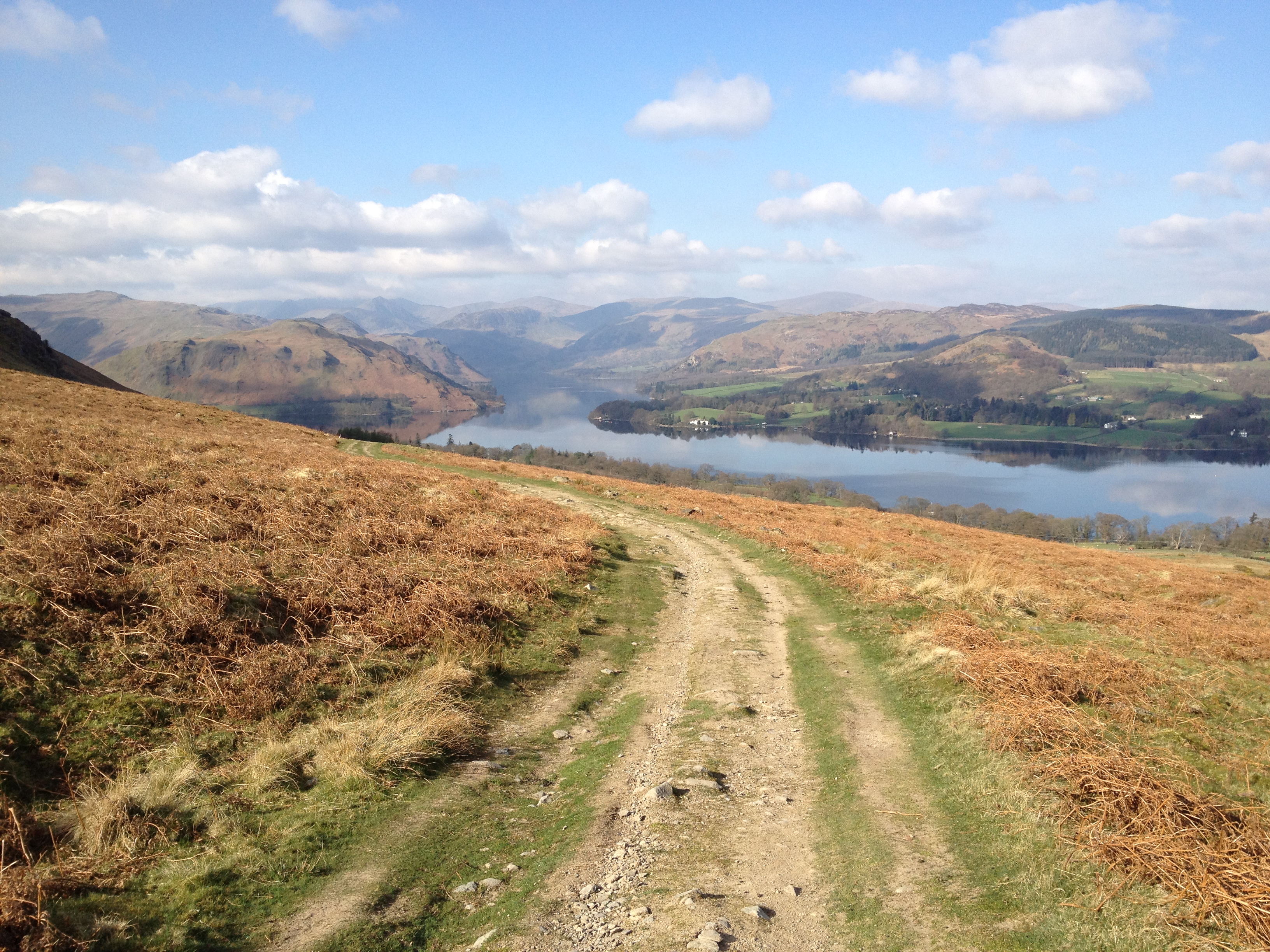 Pooley Bridge was bright and cheery on Sunday morning but my position at the back of the second bus meant I was also at the back of the loo-queue! Most of the hundred or so runners were on their way up the gently rising lane to Barton Fell by the time I set off. Still, with such fine views and easy going my body soon woke-up and settled into a comfortable rhythm, encouraged by the delightful run down into Howtown – a descent of some 200m over 4km. Perfect. (I very much doubt I will feel this way on the main event, after having already traversed 50 miles!)