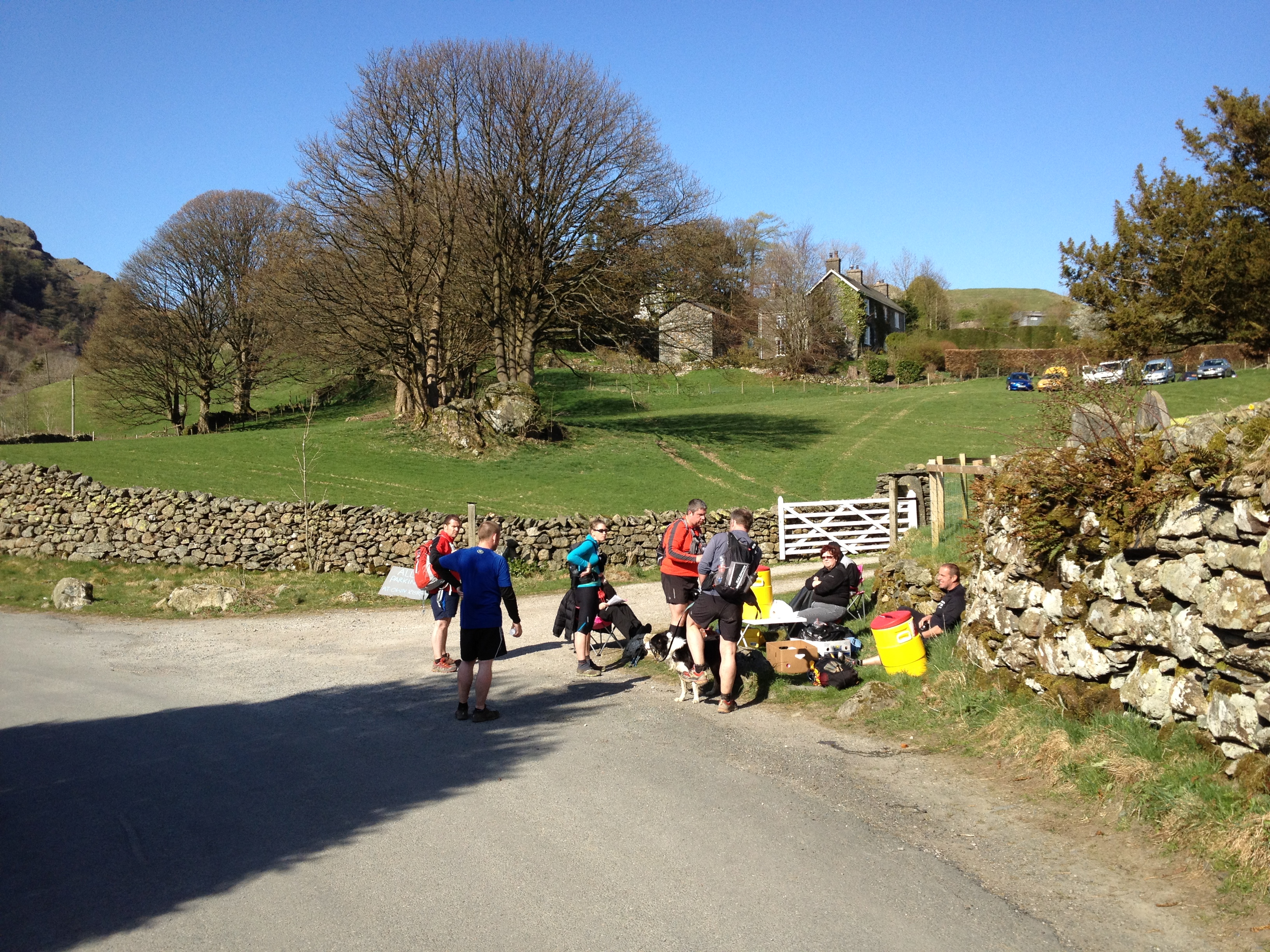 A number of runners were basking in the glorious sunshine, fuelling their muscles for the punishing climb ahead, for that is what the long, long 300m pull up to Gatescarth Pass is. It was hot work, sweat streaming down my face, but all things must pass and the descent is on a good surface and easy going.