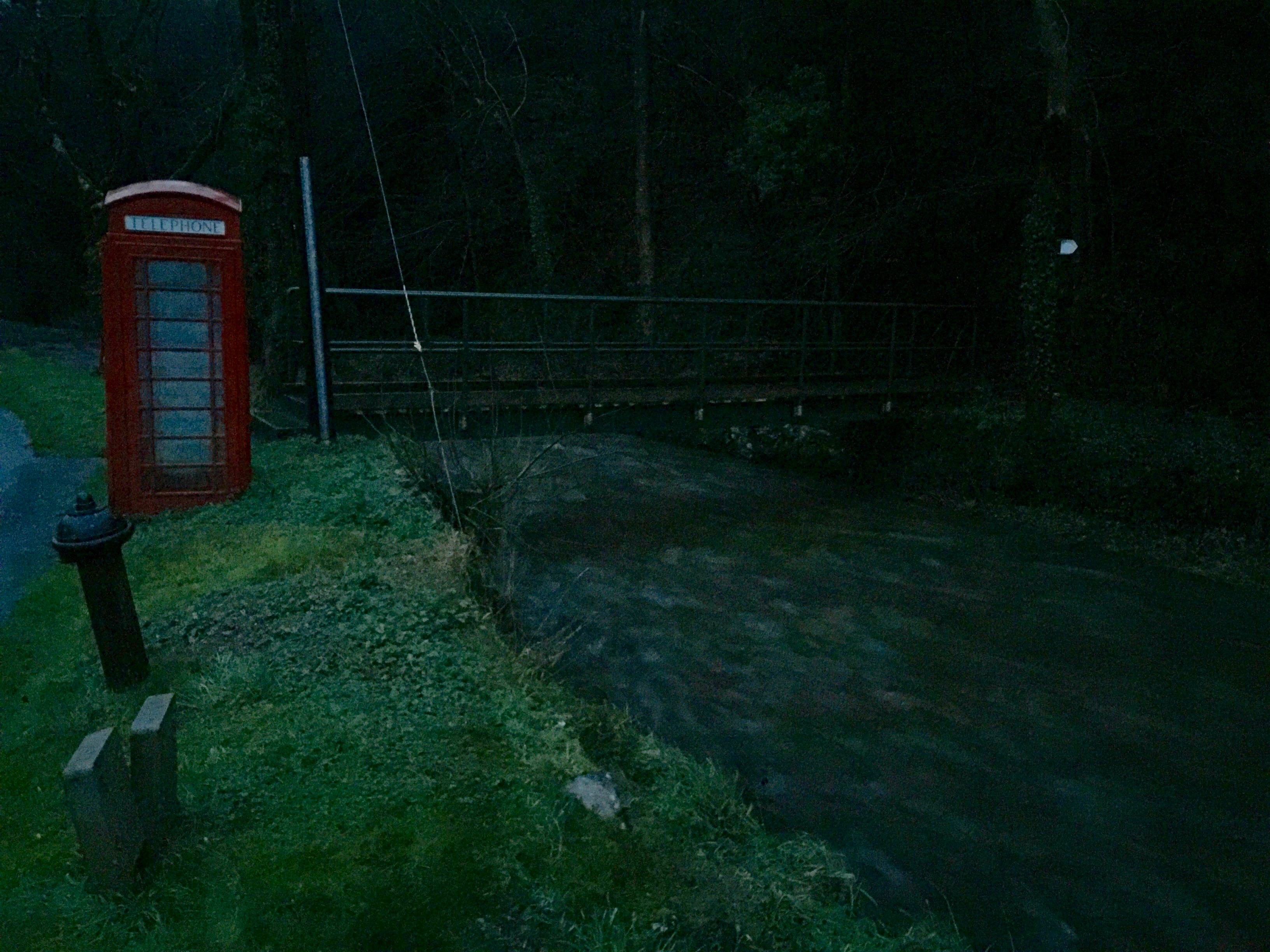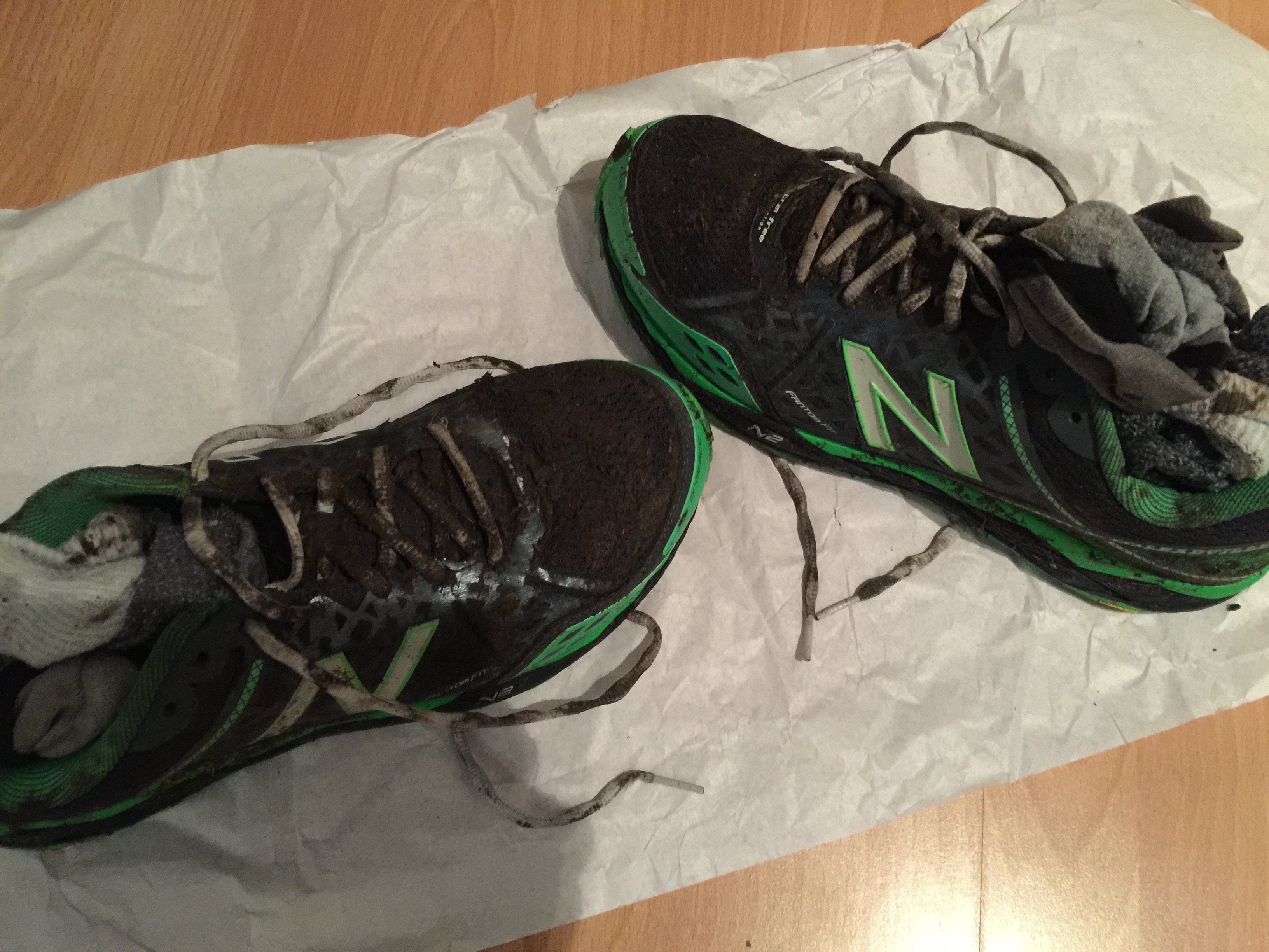 I set off on my usual – and favourite – run; up through the wood over to Deborah’s well and via tracks and fields to Pantymwyn. The ground was saturated and the mud deep and slippery, but the shoes have excellent traction, even on a couple of short but treacherous descents. Down through the trailer park to the chapel and down further to the footbridge by the telephone box.