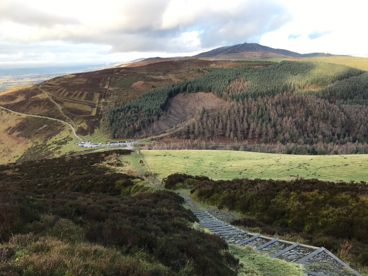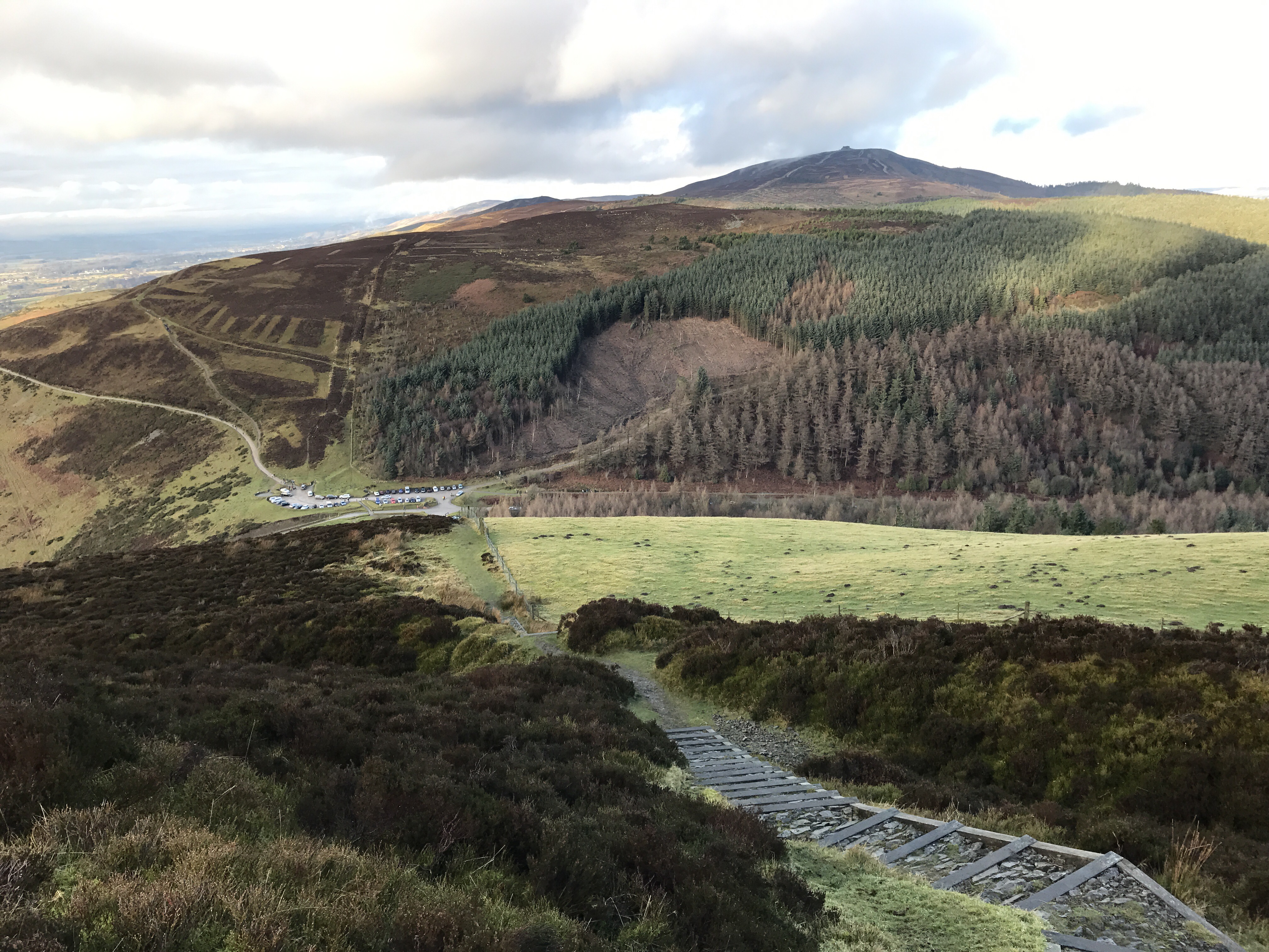 On a very mild and sunny day, with many people either returning to school or work the next day, I picked a route that would hopefully be free from crowds. Helen reported from the summit of Moel Famau (MF) that it was packed, and I hoped that by the time I reached there most people would have left.