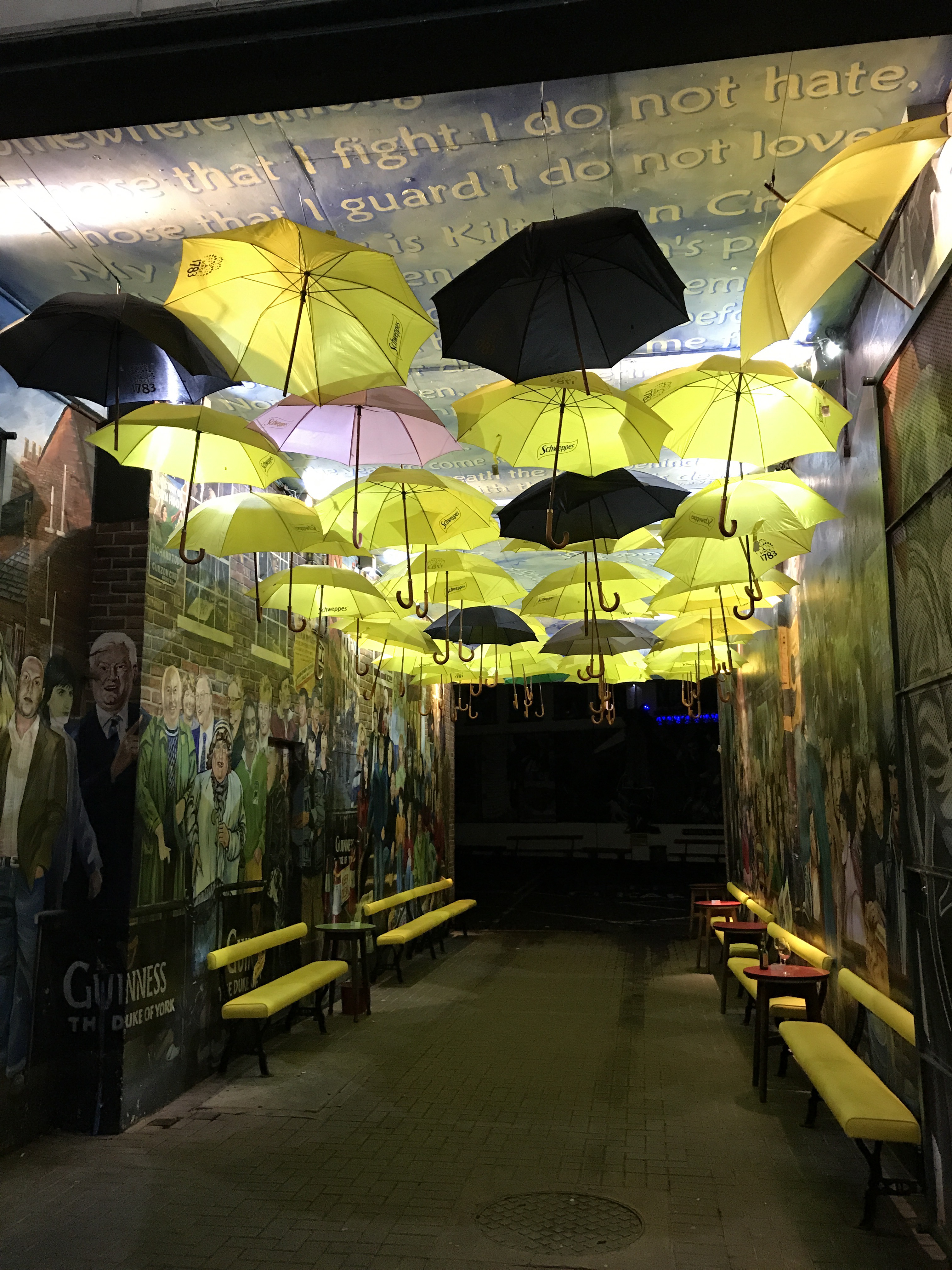 Belfast is a lovely city which has worked hard to make itself accessible, safe and fascinating for the visitor. The river promenade is modern and full of interesting sculptures and buildings. Tomorrow will see me visit the Titanic Museum and this major development has fuelled an exciting vibe along the river and in the town centre. Here, the tiny alleys – the Entries – which once one would have never dared venture down have been cleaned up and well-lit – though I still suspect late on a Saturday evening one might hesitate, as you would in any major city.