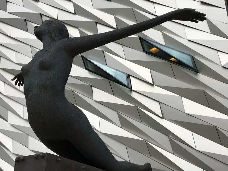 The approach to the iconic building is impressive and carefully choreographed, passing the last White Star liner still in one piece – The SS Nomadic – in a dry dock. The Titanic building itself is iconic and beautiful, tall and imposing, evoking the ship’s prow and with the famous statue by Rowan Gillespie of Titanica with arms swept back in the pose made familiar by Kate Winslet in the 1997 film.