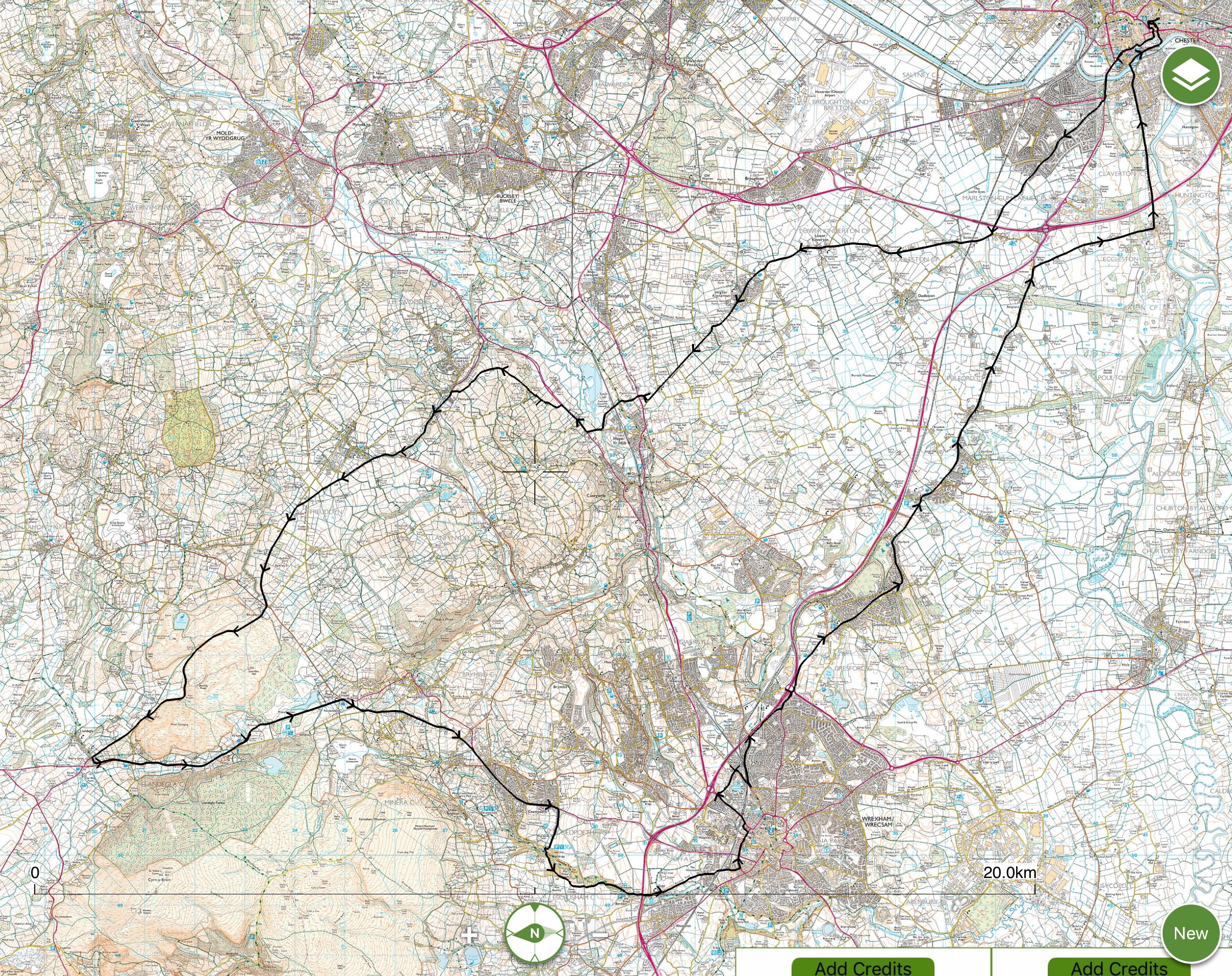 Today’s route I’d done a few times before and decided to leave it more or less the same. There’s an optional hilly section in the middle of the outward journey as my route crosses the Northern end of Hope Mountain and this does skew the statistics somewhat.