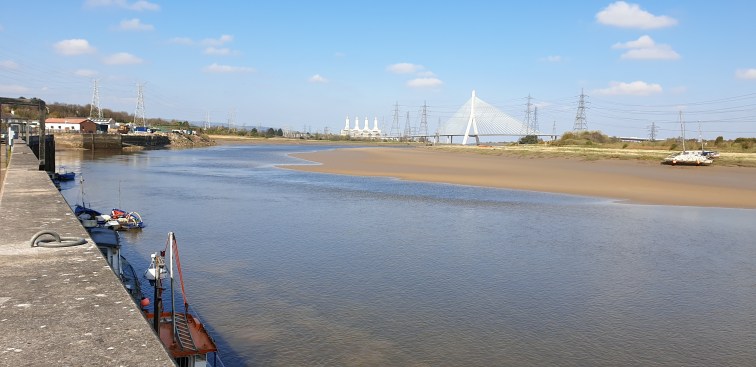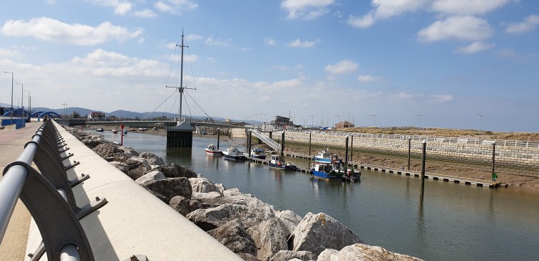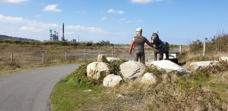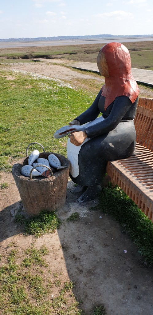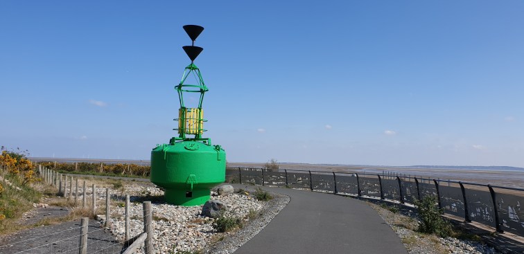 Leaving Chester by the Dee cycle path, I joined National Cycle Network route 5 (NCN 5) as my route crossed the river at Hawarden Bridge. The riverside and old docks at Connah’s Quay are another fascinating spot. A short stretch of busy road followed before arriving at Flint, and turning off to visit the Castle area. This is such an interesting spot, and the recent addition of two wooden characters – one a fisherwoman sitting on a bench, filleting fish; the other an RNLI seaman, looking to the wider estuary with his binoculars, adds to the atmosphere and are a uperbly characterised.