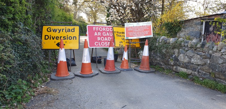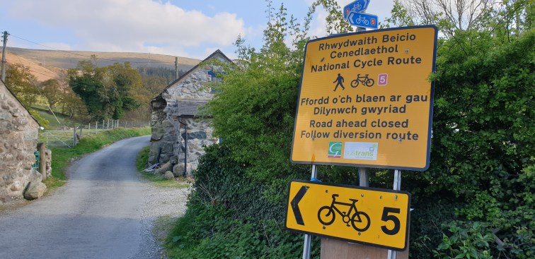 After passing through Abergwyngregyn the route hugs the hard shoulder of the A55 for a short spell before taking to a parallel country lane. Unfortunately a bridge was being replaced further along this road, so NCN5 was diverted to the SW, climbing high into the foothills before a steep descent into Llandygai to regain the route.