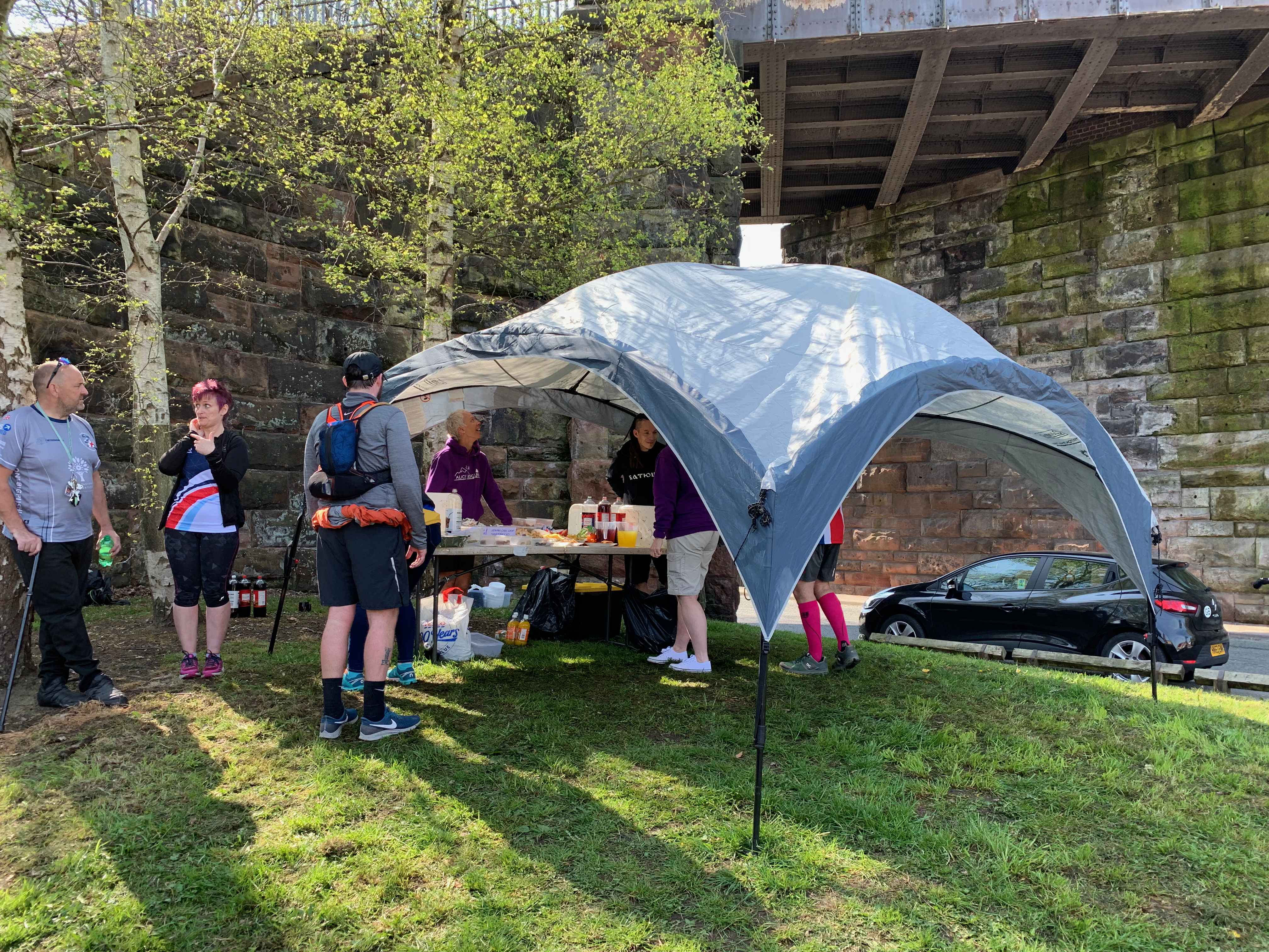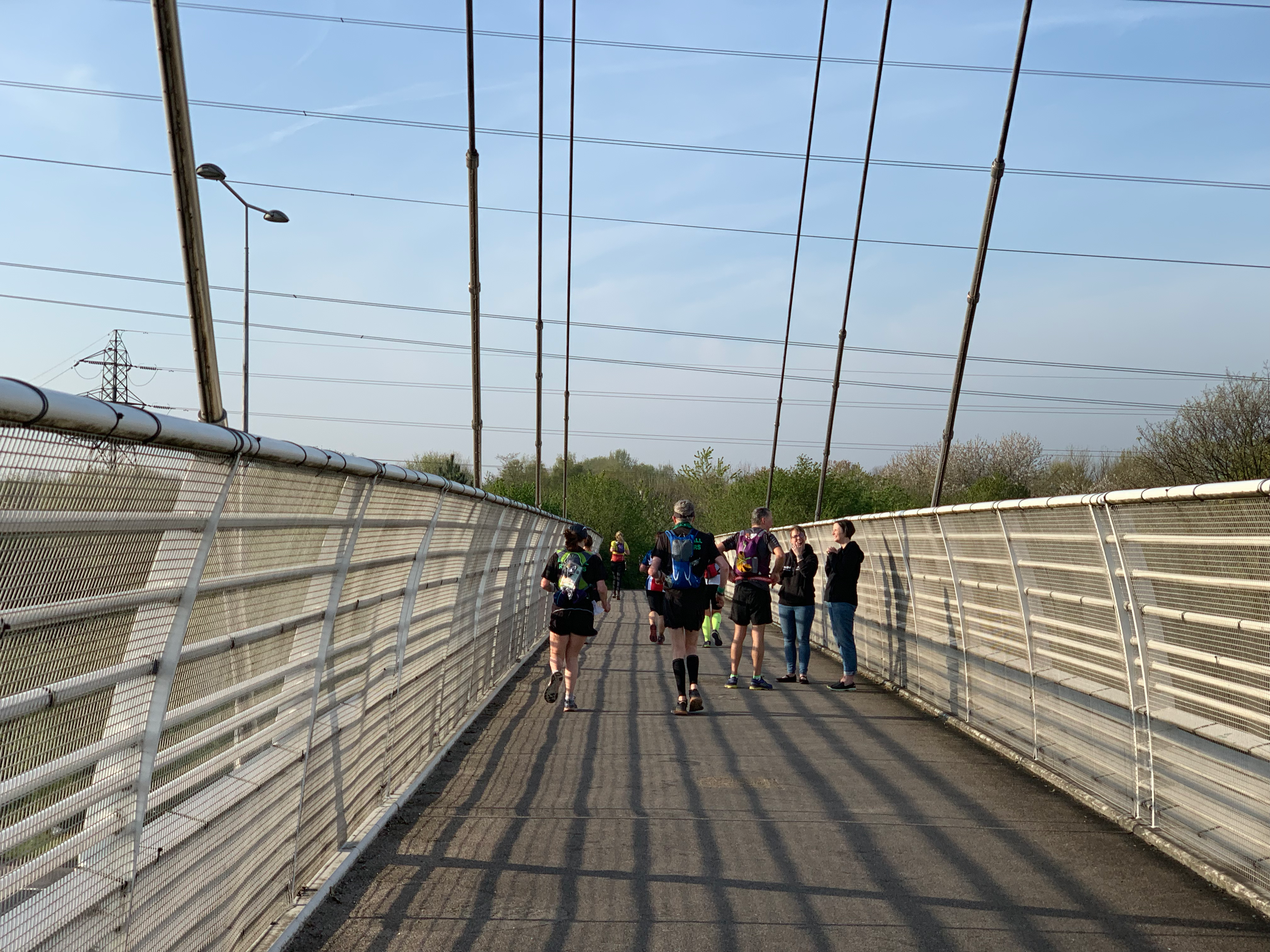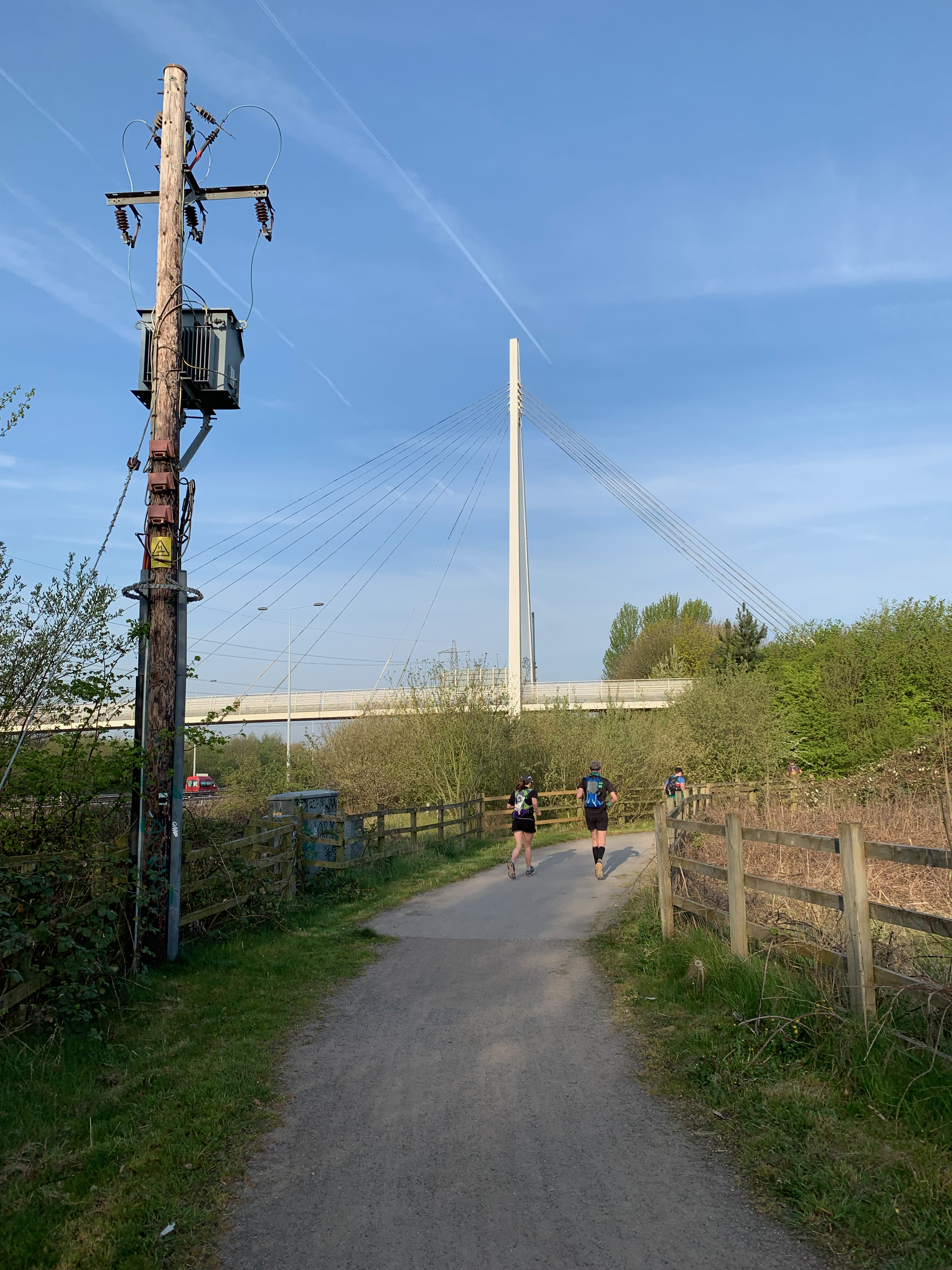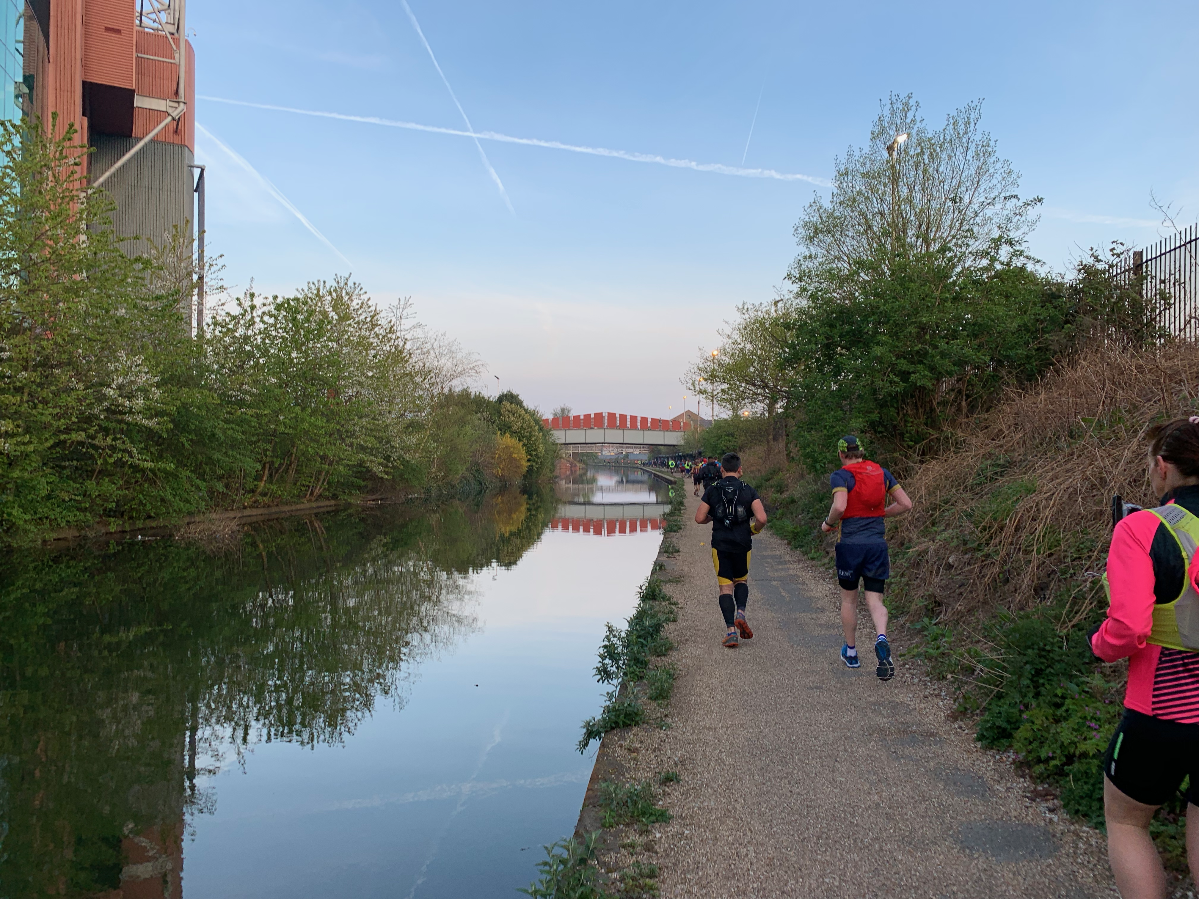Friends and colleagues will know that I prefer Moor and Mountain running to that of Road. This course was flat and tarmac/gravel all the way, adhering to the Trans-Pennine Trail route all the way – the only ascent coming at bridges. The pace was fast from the start – I dropped into a pack that felt comfortable and didn’t let up for over 20 miles, apart from checkpoints. This is unknown for me. Mountain running varies your muscle movement, sharing it equally. Ground conditions vary – soft one minute, interesting the next. Often feet are wet for most of the 100 miles! To run, as yesterday, puts too much pressure on the same muscles, and the cut-off times – always tight on GBUltra events – mean you have to keep going. I suspect this is what caused my left knee to become painful when running, just over half way round. I was able to walk strongly but once I started to jog, it became painful.