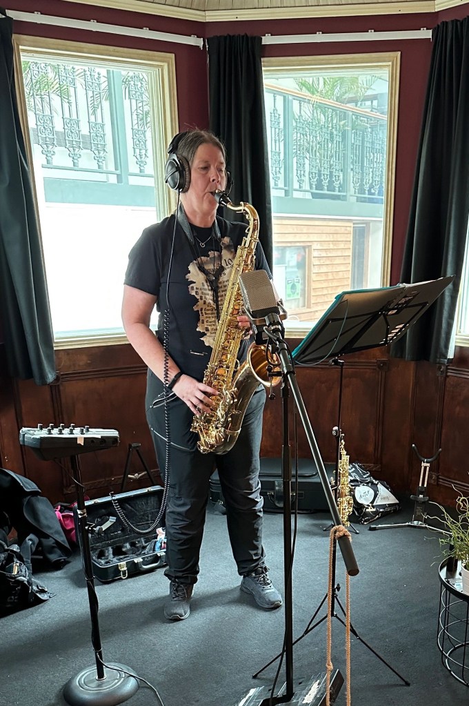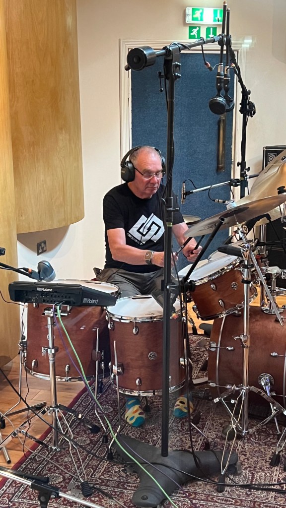 The studio facilities are outstanding – not long after setting my kit up it was surrounded by 16 microphones of different shapes and sizes, some notably vintage, together with room mics, and a lengthy session ensued getting the levels of each right. Helen was in her booth, again with room capturing microphones as well as closer ones: her fabulously rich sounds emerging in the control room, where Richard was playing from his Roland Fantom – a hug beast of a machine!